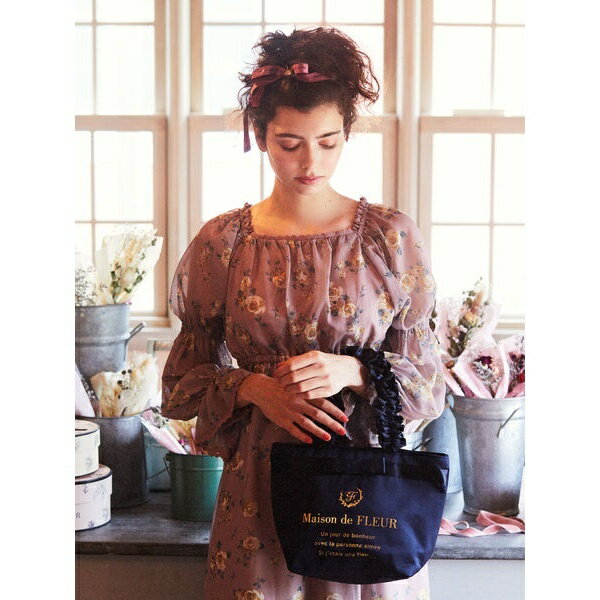 メゾン ド フルールのブランドロゴフリルハンドルトートSバッグサテンリボンのラインがレディなアクセントに映えるフリルハンドルトートバッグ。