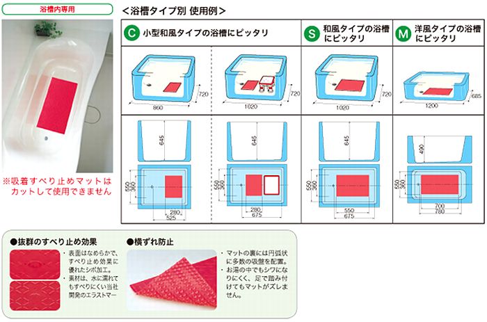 横ずれ防止 ● マットの裏には円弧状に多数の吸盤を配置。