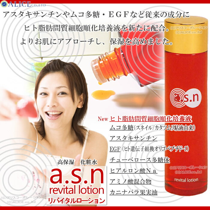 【正規販売店】 リニューアル♪ a.s.nリバイタルローション(125mL)[ ローヤルコーポレーション エンチーム ] { アスタキサンチン かたつむり カタツムリ ヒト脂肪間質細胞順化培養液 幹細胞コスメ 保湿 化粧水 a.s.n revital lotion asn ローション a.n.s ans } 【送料無料】
