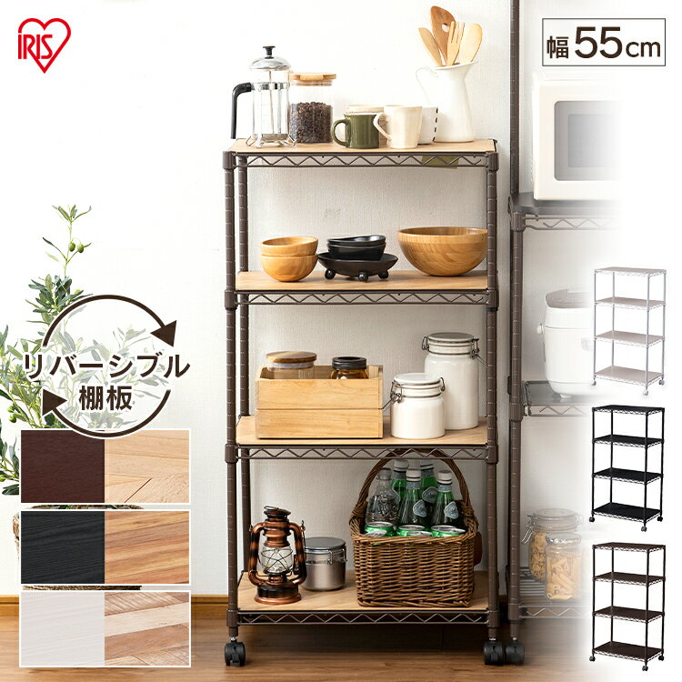 ≪100円OFFクーポン配布中≫メタルラック CMM-55104Bウッドボード付き カラーメタルラック ホワイト・ブラック・ブラウン送料無料 スチールラック 収納 キッチン リビング おしゃれ アイリスオーヤマ