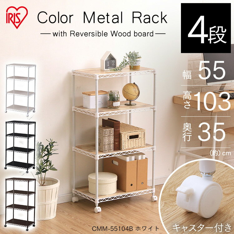 ●商品サイズ(cm)幅約55×奥行約35×高さ約103●ポール直径19mm●耐荷重棚板1枚あたり:約50kg全体:約50kg(移動時)全体:約100kg(静止時)●主要材質本体:スチール(エポキシ粉体塗装)固定部分:ABS樹脂●ウッドボード4枚●ウッドボードカラーホワイト:ホワイトウッド/カントリーウッドブラック:ブラックウッド/ヴィンテージウッドブラウン:ブラウンウッド/ヘリンボーン(検索用:スチールラック 収納 キッチン リビング おしゃれ 4967576446495 4967576446501 4967576446518) 当店おすすめ特集★