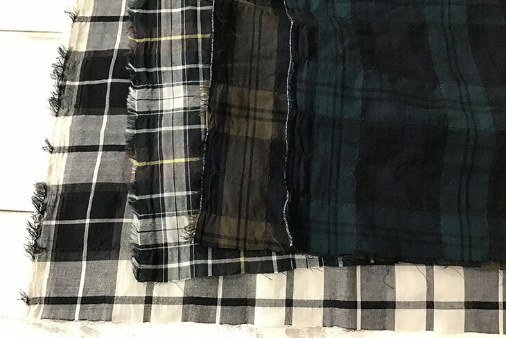 【スペック】混率:コットン99% ポリウレタン1%%、巾:108cm先染60sオーガニックコットンシャーリングタータンチェック 60sのオーガニックコットンを使用した薄手のシャーリング素材。